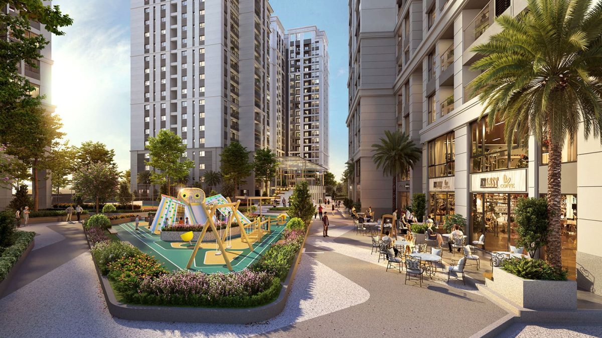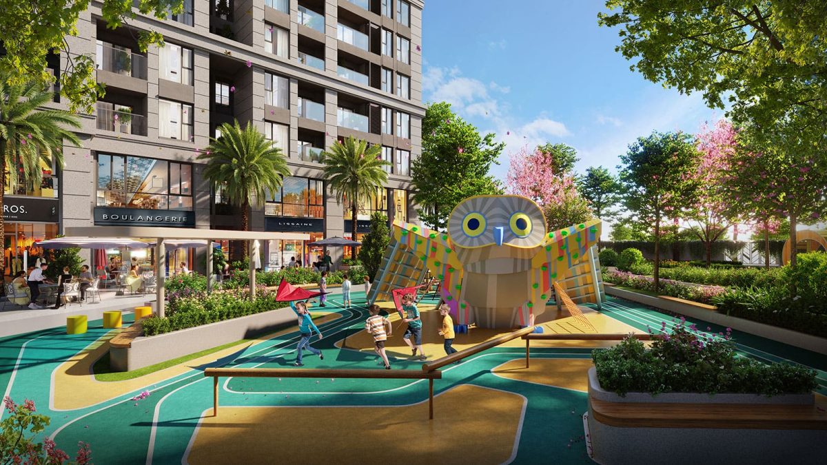 Khu vực sân chơi trẻ em được tận dụng và bố trí cận kề các tiện ích như cafe, siêu thị mini, nhà hàng, tạo điều kiện thuận lợi cho các bậc phụ huynh giám sát con cái đang vui đùa cùng bè bạn. Sân chơi thể thao, với sân tennis và sân đa năng cho bóng rổ, đá bóng, được chú trọng, đáp ứng nhu cầu tập luyện và giải trí của cả gia đình.